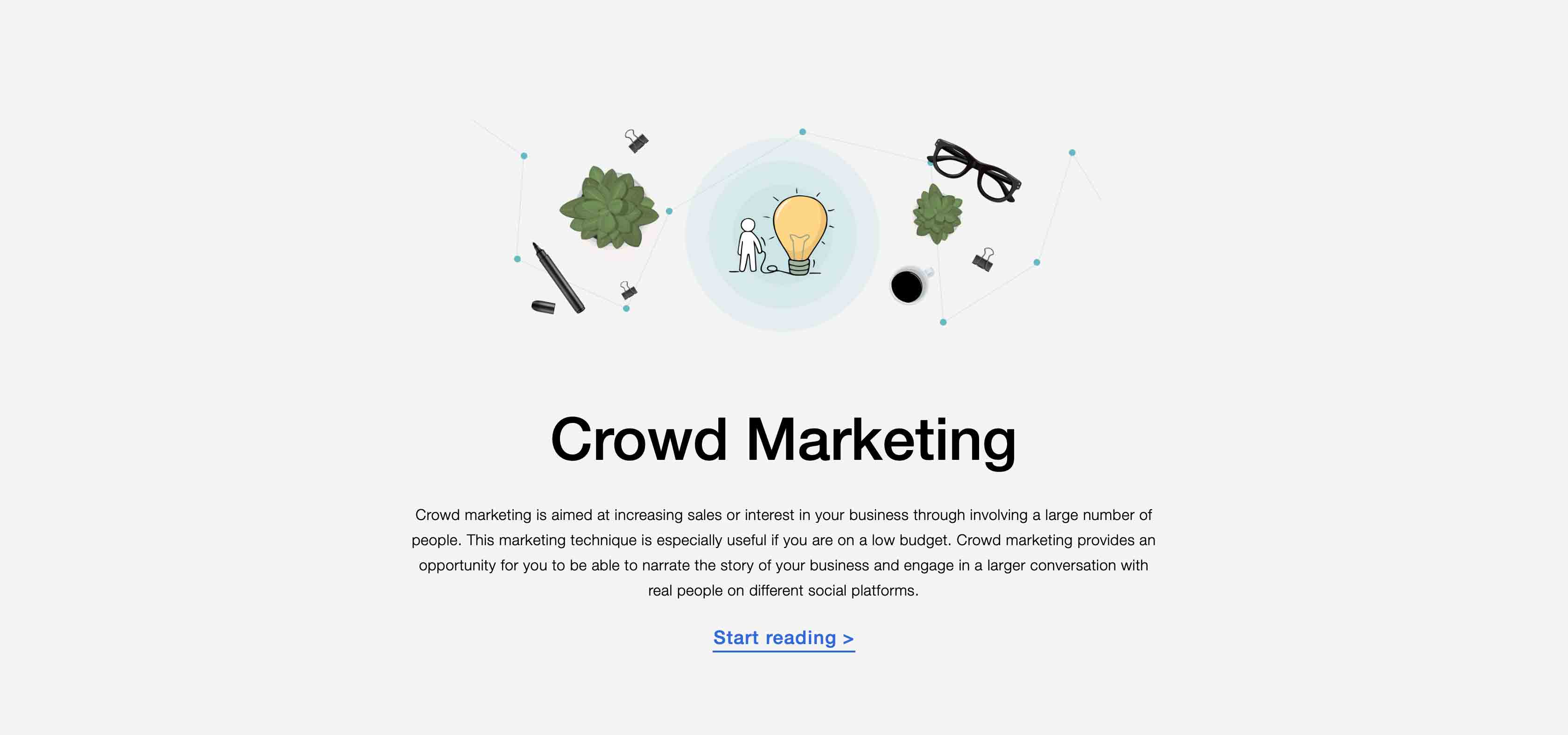 This article has to do with a highly intriguing promo approach called crowd marketing. Actually, “crowd” indicates “any large number of individuals”. Therefore, this term can be defined as follows: is a promo method, which attends to a complex of events intended at increasing sales of a particular item, based on recommendations that occur as an outcome of a the site or brand (TM) promo on the internet.
